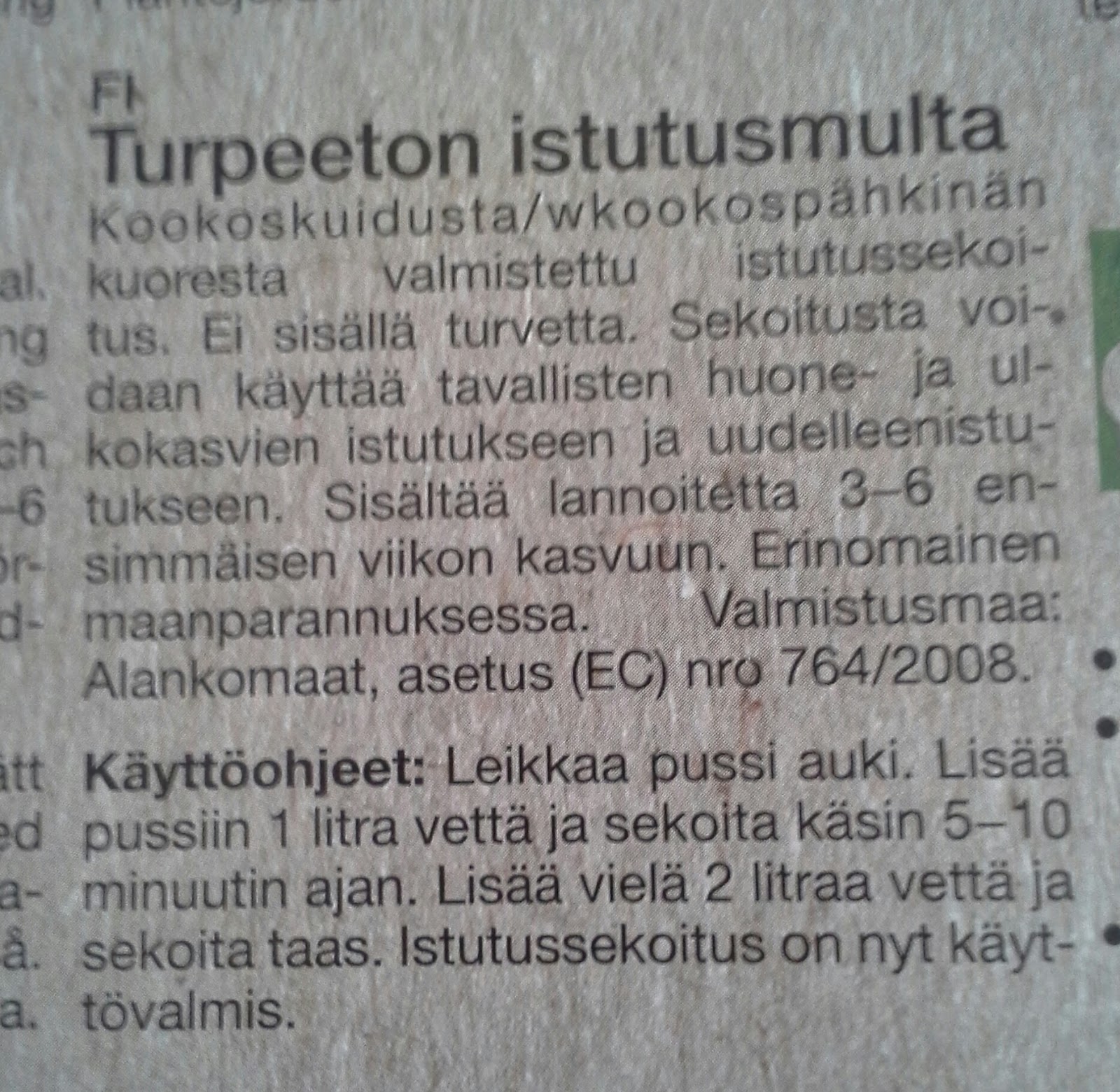 Ostin eilen tuollaista istutusmultaa. Ohjetta noudattaen homma ei pelittänyt. Mutta kun laitoin koko vesimäärän ja annoin kunnolla sen imeytyä, alkoi tapahtumaan. Joukkoon sekoitin pussinpohjat multaa. Nyt on siemenet kylvetty.
